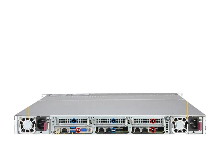 2 PCIe 5.0 x16 LP slot(s) 1 PCIe 5.0 x8 LP slot(s) 2 PCIe 5.0 x16 AIOM slot(s) (OCP 3.0 compatible) |