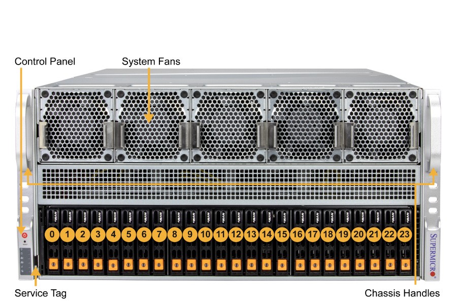 24 front hot-swap 2.5" PCIe 5.0 NVMe drive bays