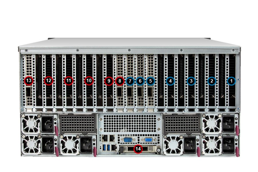 - (8 double-width GPU is recommended, other 5 slots reserved for Networking scale out)