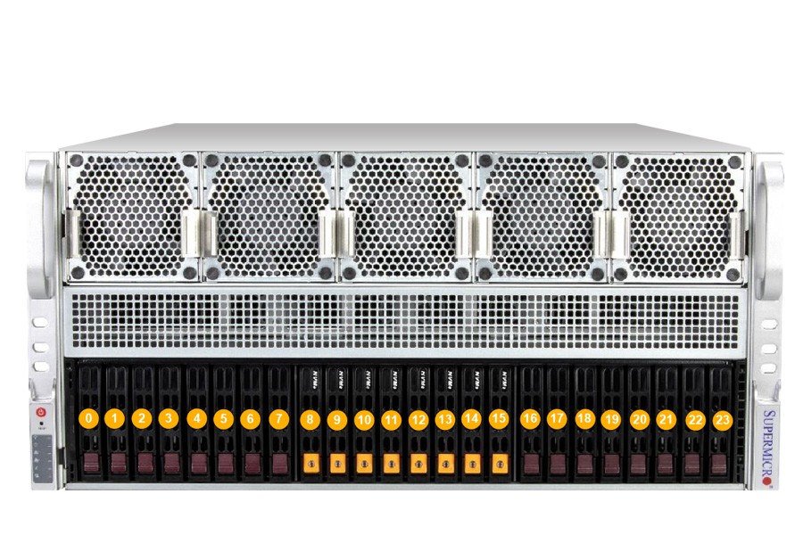 - Dual front hot-swap 2.5" SATA + 8 front hot-swap 2.5" NVMe drive bays